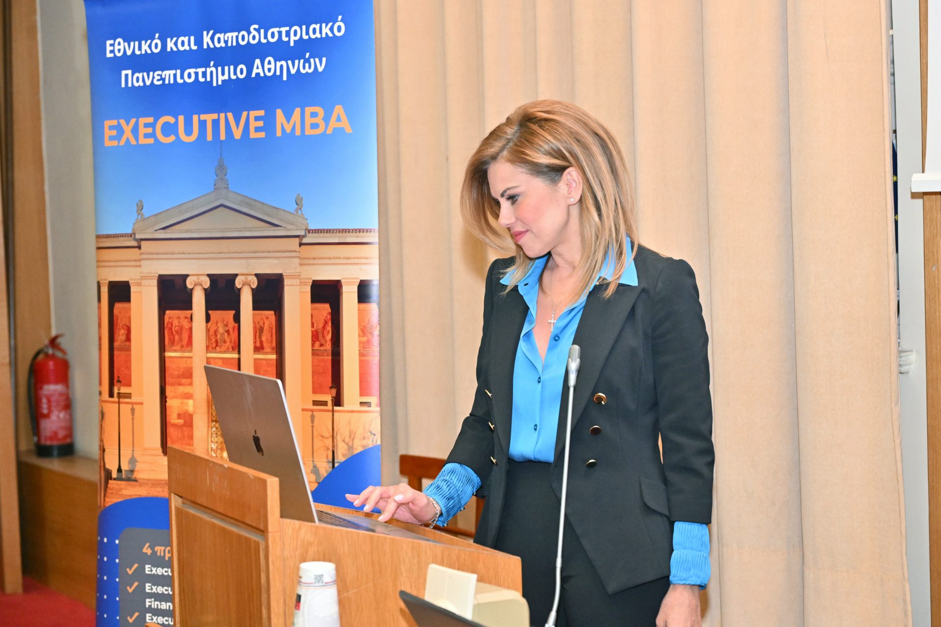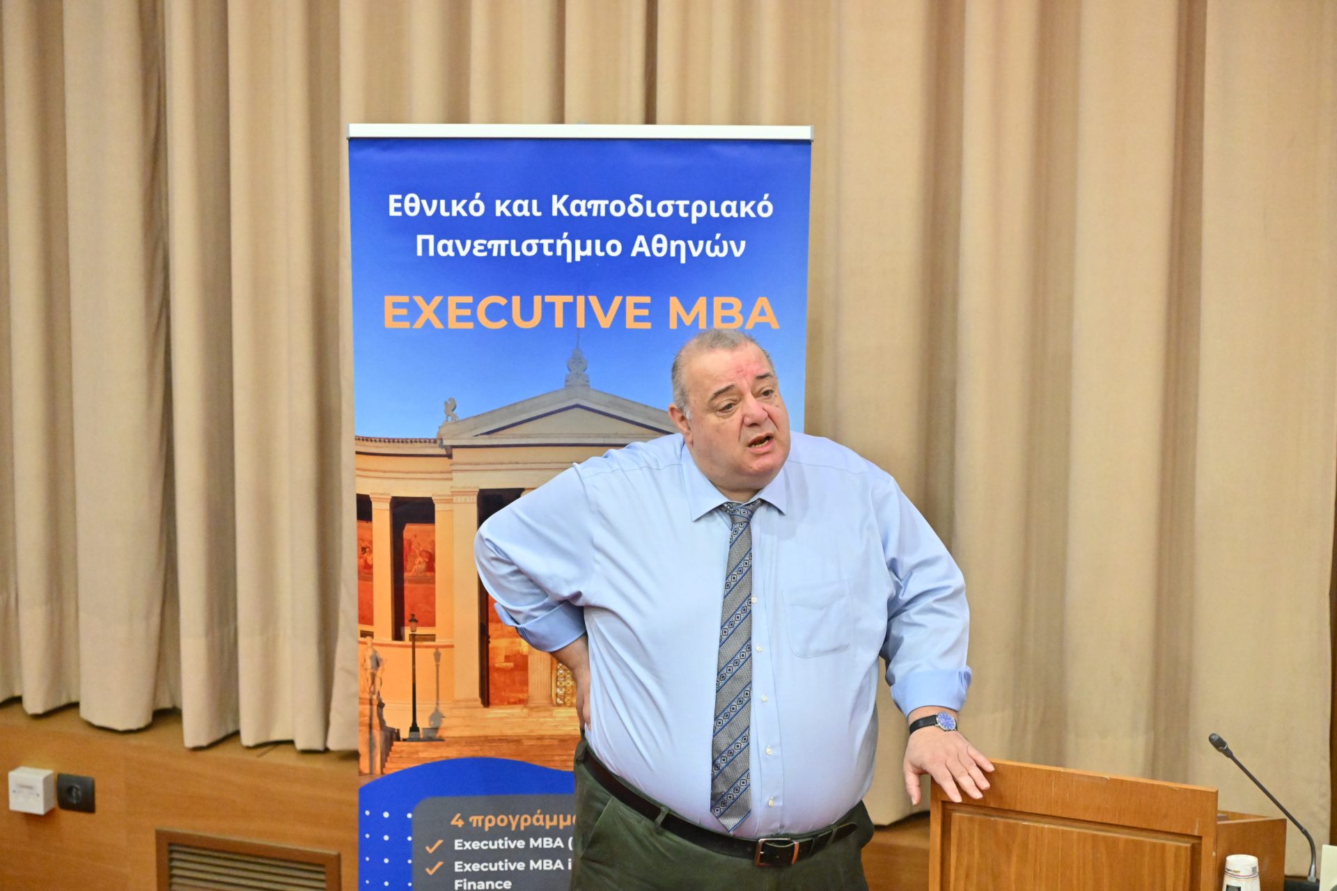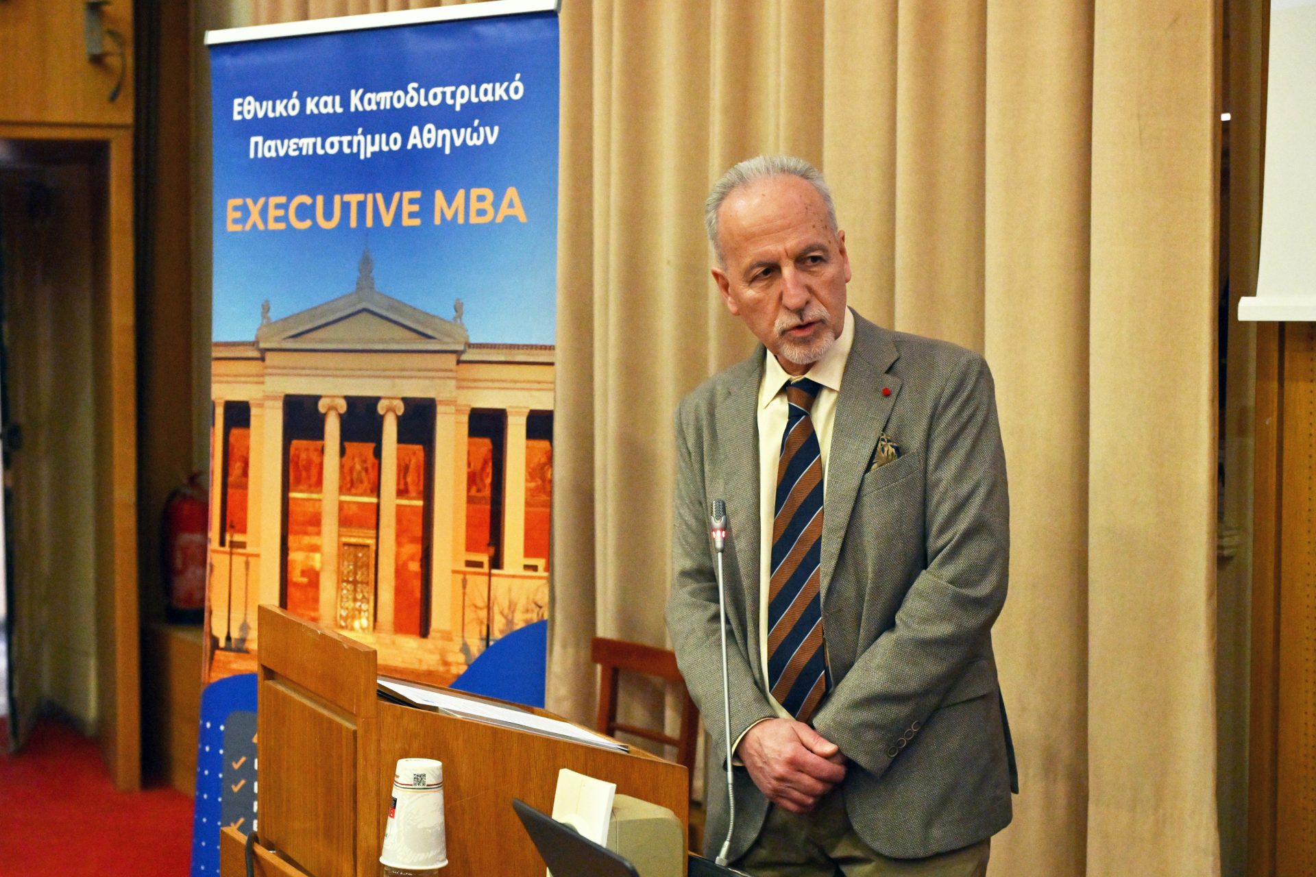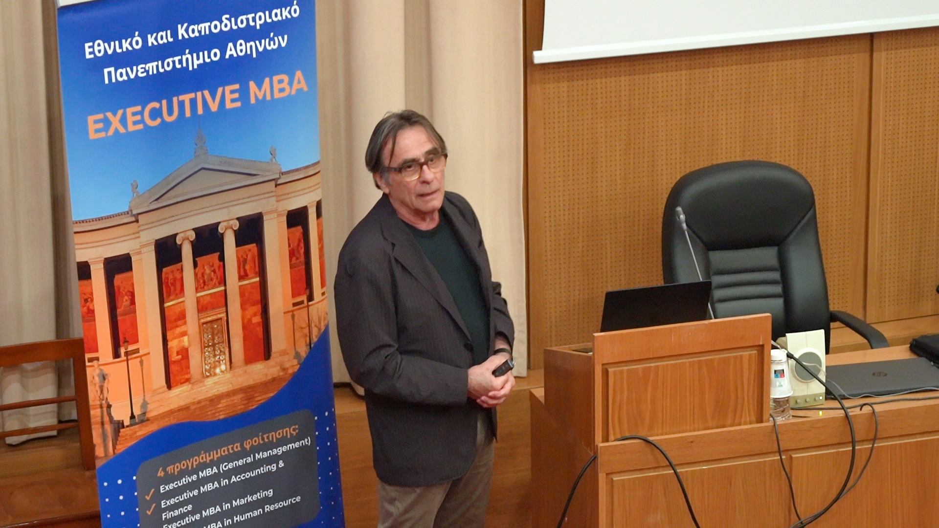 Την εκδήλωση άνοιξαν με χαιρετισμούς ο Κοσμήτορας της Σχολής Οικονομικών και Πολιτικών Επιστημών, Καθηγητής Νικόλαος Ηρειώτης, και ο Διευθυντής του Executive MBA, Καθηγητής Δημήτριος Βασιλείου.